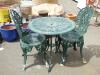 4 OUTDOOR METAL CHAIRS WITH CUSHIONS